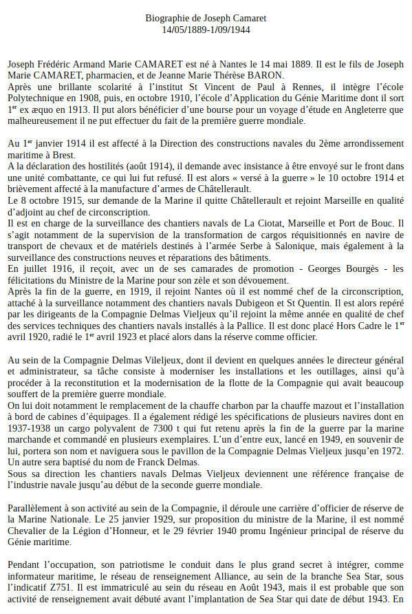 à La Pallice, donc sous les ordres de Joseph Camaret, mais pas