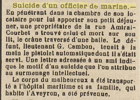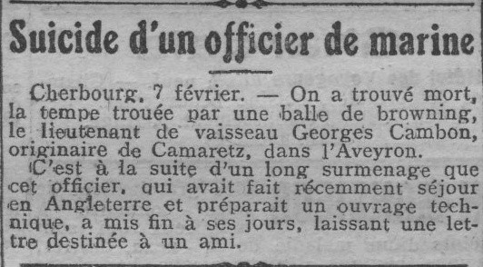 Né le 28 octobre 1896 à CAMARES (Aveyron) - Décédé en février 1925 à
