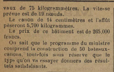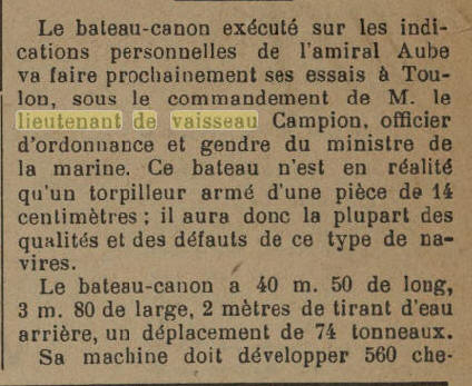 (nomination du 1er septembre 1884), Commandant le torpilleur N° 46,