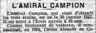 (nomination du 26 mai 1884), Commandant l'aviso "ALOUETTE", Station