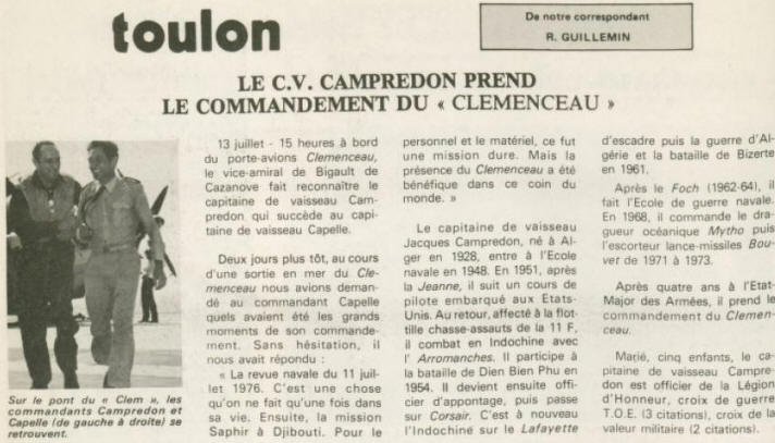 Commandement Porte Avions Clemenceau : Toulon - Déc. 1975 -