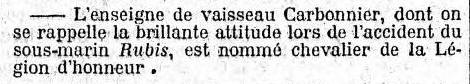 Le 1er novembre 1910, Second des sous-marins "RUBIS" et "OPALE",
