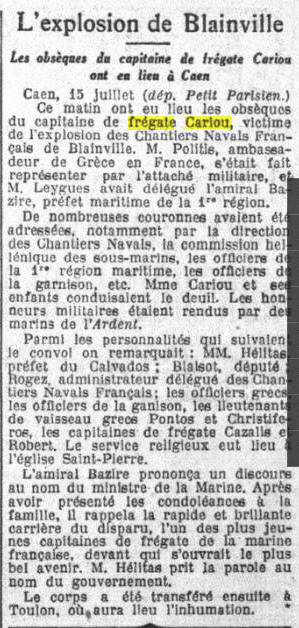 Né le 16 février 1887 à BREST (Finistère) - Décédé le 11 juillet 1929 à BLAINVILLE sur