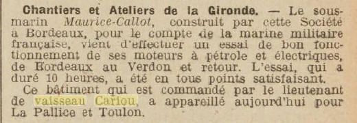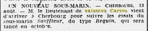 Le 11 octobre 1913, Second du sous-marin "BERTHELOT", 1ère