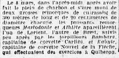 "ERNEST-RENAN", 1ère Escadre légère, 1ère Armée navale (Cdt Jean RATYÉ).