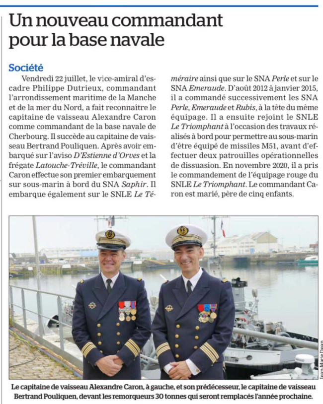 nouveau commandant de la base navale (BN) de Cherbourg, succédant au