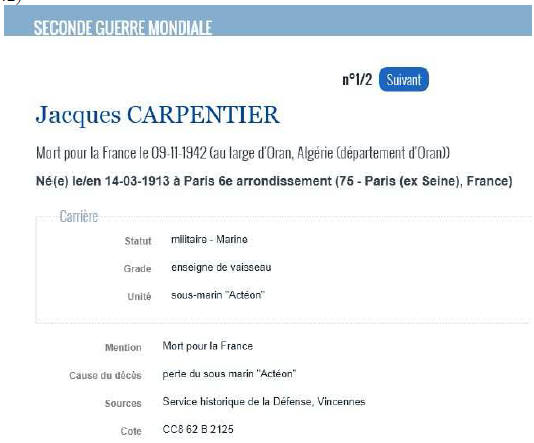 juillet 1943, l'enseigne de vaisseau Carpentier a reçu la citation