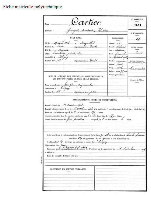 Élève de l'École polytechnique le 1er novembre 1903, opte pour le