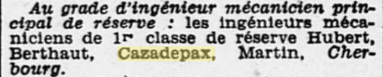 Mécanicien principal de 2ème classe le 24 janvier 1909.