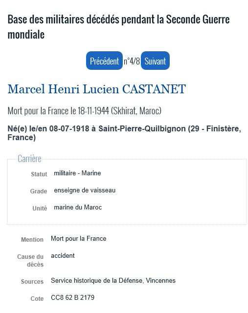 BREST - Finistère) - Décédé le 18 novembre 1944 entre RABAT et