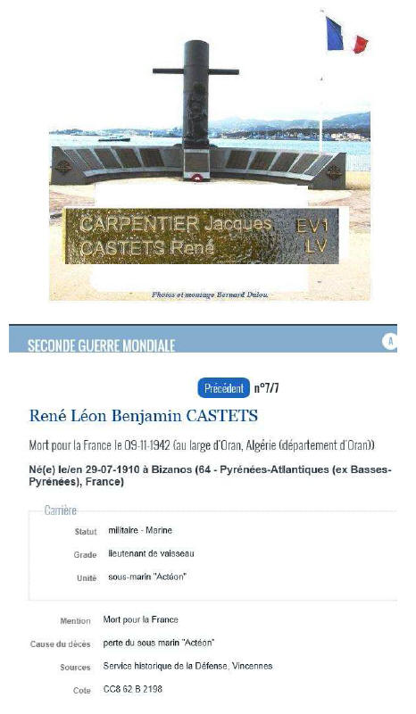 Castets a reçu la citation suivante à l'ordre de l'armée de Mer :