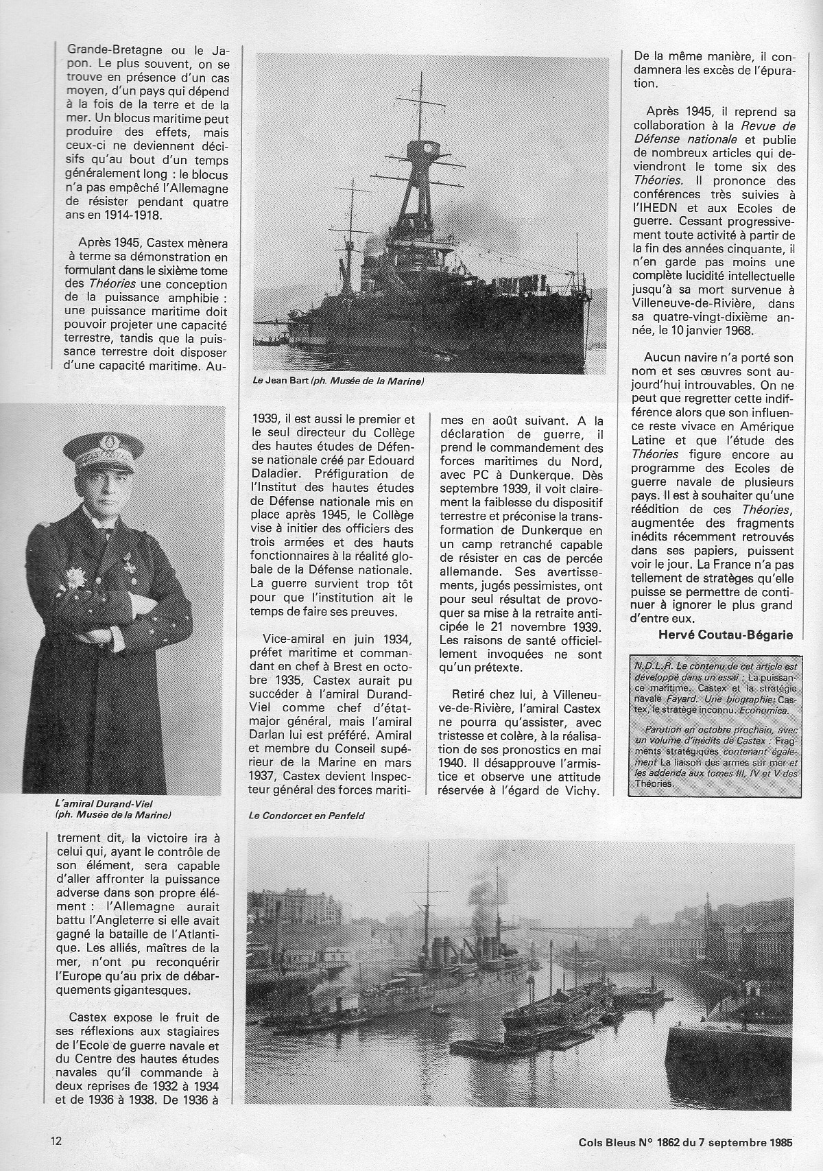 Entre 1929 et 1939, Castex publie Théories Stratégiques. Il y