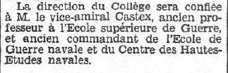 1919, de la direction de l'école de guerre navale en 1932 et en
