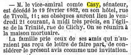 Décédé le 19 février 1862 à PARIS IXe (Seine)