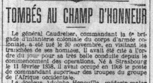 Citation : "Tombé glorieusement, le 30 novembre, en examinant de la