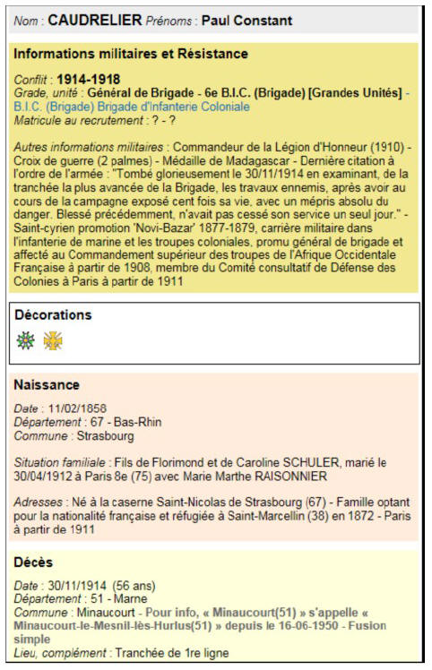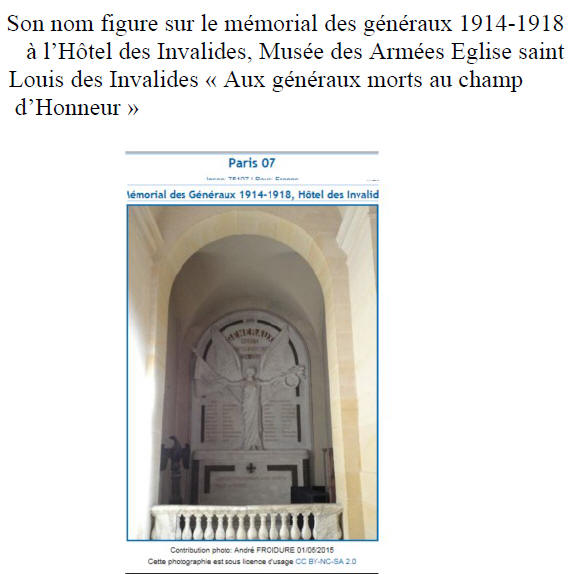 Officier de la Légion d'Honneur le 31 mai 1904, étant Colonel