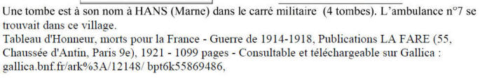 Inhumé à HANS (Marne), Carré militaire, tombe 1.