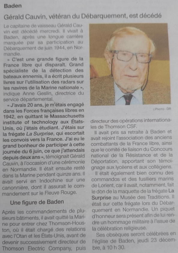 Extrait Ouest-France du 19 décembre 2021 / Remerciements Yves Ferré