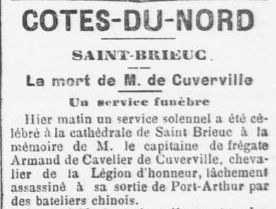 BREST (Finistère) - Décédé en mer le 17 août 1904 dans le Golfe de