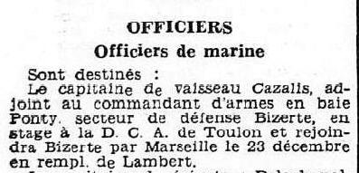 Officier adjoint au commandant de la Marine à BORDEAUX.