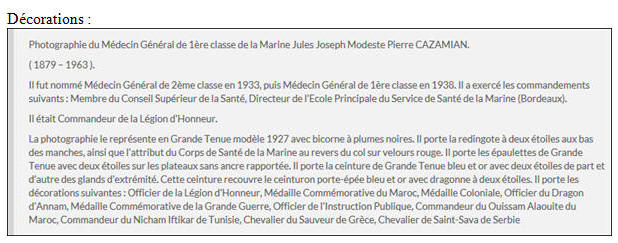 Médecin en chef de 1ère classe le 1er janvier 1929.