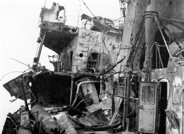 Le bloc passerelle de "l'Audacieux" après l'engagement.