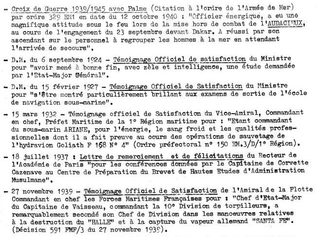 d'Honneur, le 27 octobre 1940 (Faits de guerre)