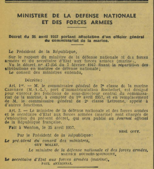 Extrait Journal Officiel du 26 avril 1957