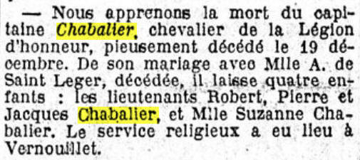 Chevalier de la Légion d'Honneur le 30 décembre 1901 étant Capitaine