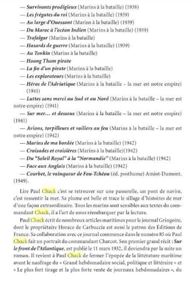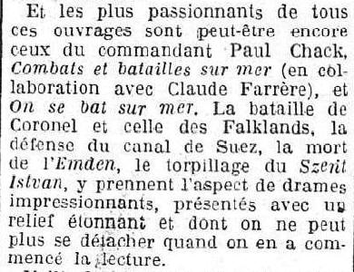 rédaction de nombreux livres portant sur la Marine durant la Grande