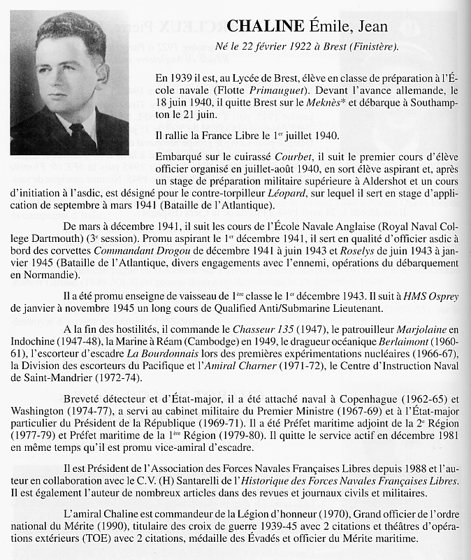 Carrière : Engagé dans les Forces Navales Françaises Libres (1940),