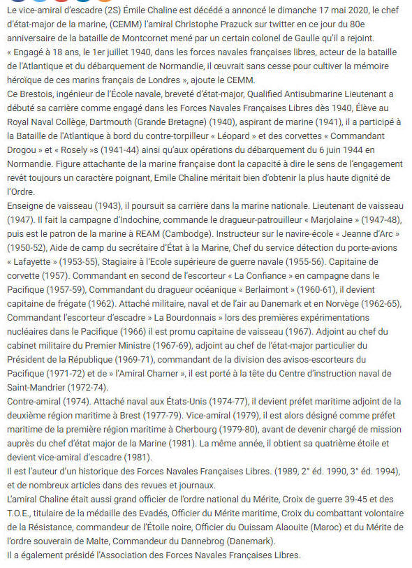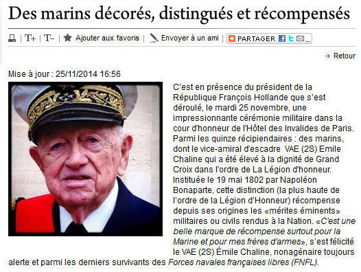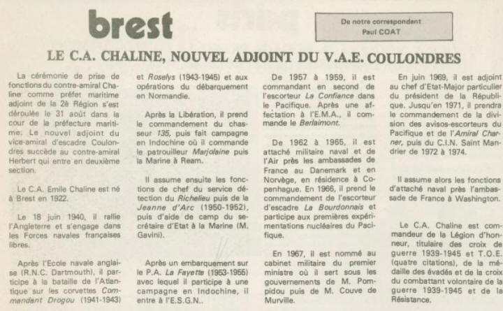 Guerre mondiale. L'amiral Emile Chaline qui choisi de faire carrière