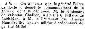 Lamour, second de la Massue, faisant fonction d’officier