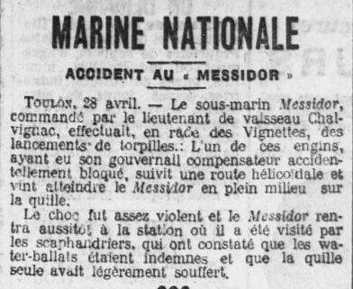 Commandant le sous-marin "MESSIDOR", 1ère Escadrille de sous-marin