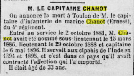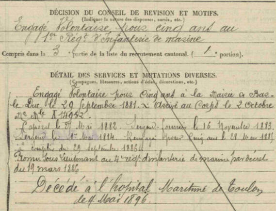 Au 1er janvier 1896, en service au 4ème RIMA.