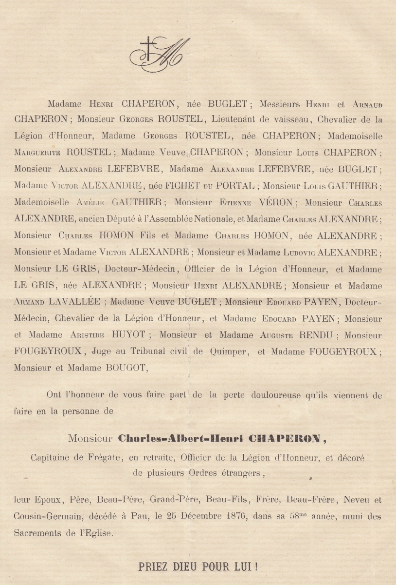 1818 à MORLAIX (Finistère) - Décédé le 25 décembre 1876 à PAU