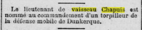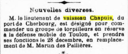 1er novembre 1898, Commandant un torpilleur de la Défense mobile de