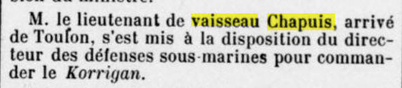 1er janvier 1902, Commandant le sous-marin "KORRIGAN", Station des