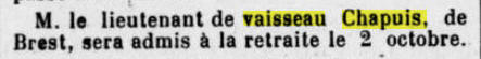 Versé dans le cadre de réserve le 2 octobre 1907; port BREST.