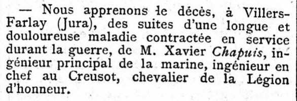 Cet Ingénieur décède des suites de maladie contractée en service.