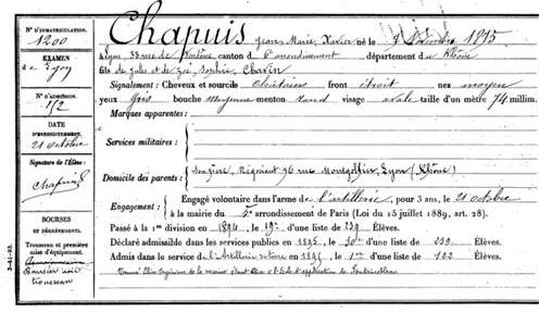Élève de l'École polytechnique le 1er novembre 1893, opte pour le