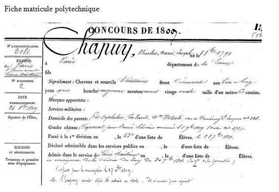 en 1809, il avait déjà été admis en 1806, mais n’avait pas rejoint