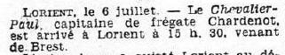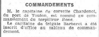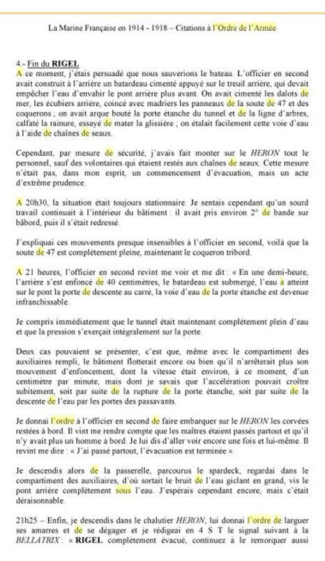 l'aviso sloop "RIGEL", il est cité à l'ordre de l'Armée navale en