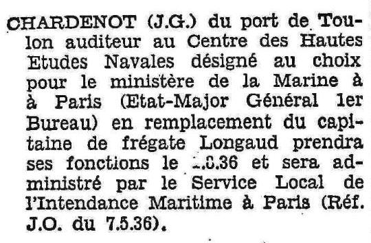 Marine (1er bureau) à Paris où il suit les cours du Centre des