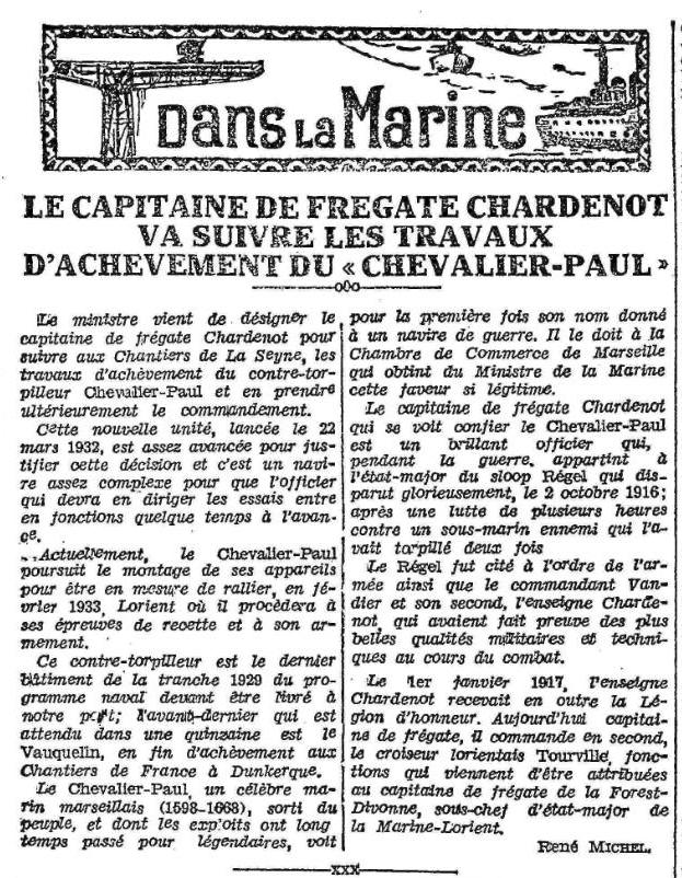 frégate Chardenot, premier commandant du bâtiment