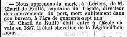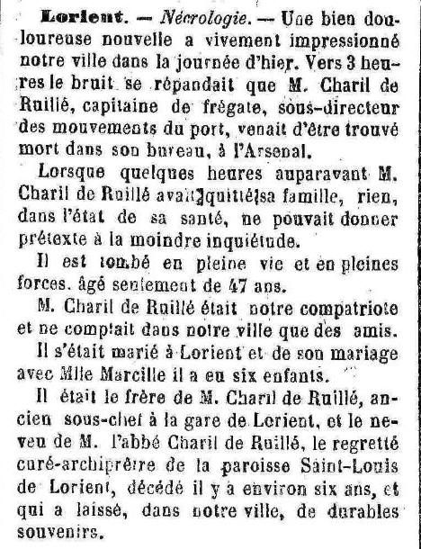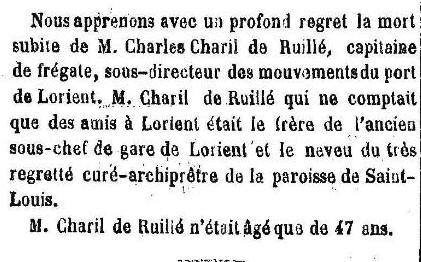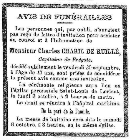 à LORIENT (Morbihan) - Décédé le 30 septembre 1887 à LORIENT