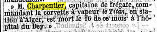 LORIENT (Morbihan) - Décédé le 24 janvier 1861 à ALGER (Algérie)