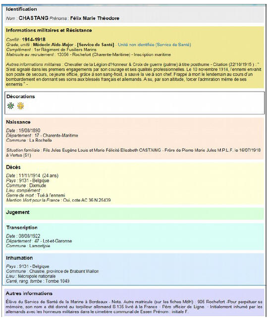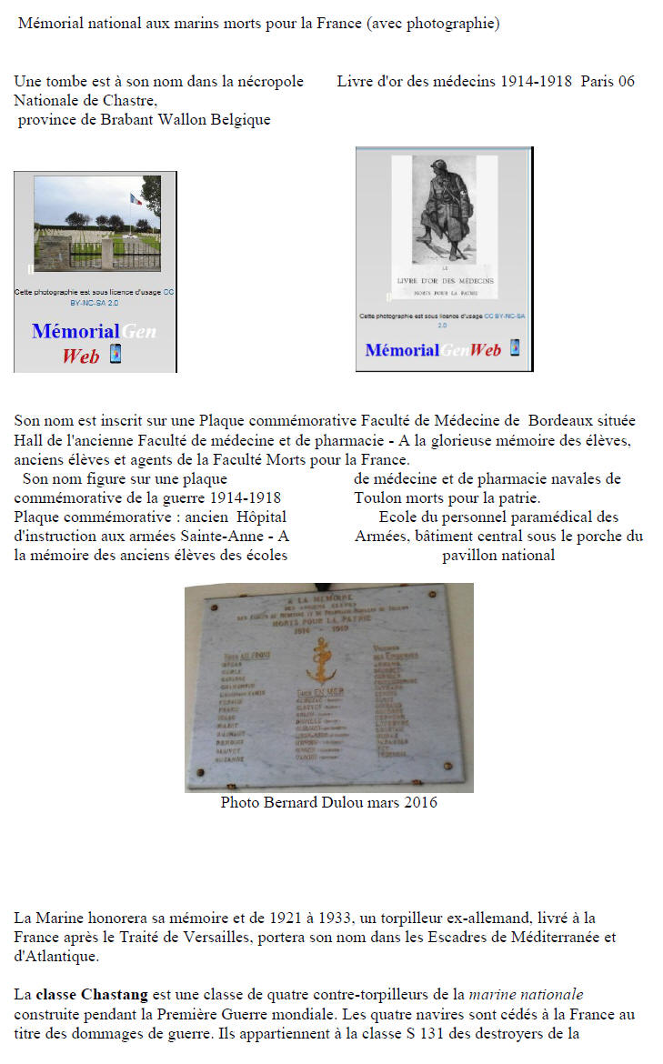 Neveu du Médecin général Léon CHASTANG.