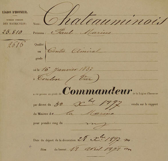 16 janvier 1837 - Décédé à TOULON le 2 octobre 1916.