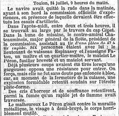 le 23 décembre 1885, il commande les équipages de la flotte à Toulon